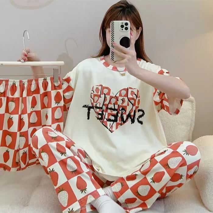 ست سه تبکه لباس راحتی تیشترت شلوار شلوارک فری سایز نخ لاگرا