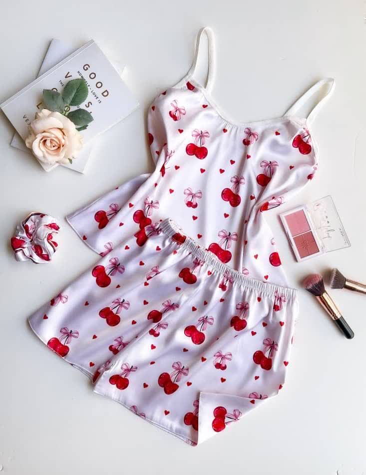 ست لباس خواب ساتن تاپ شرتک کش موه